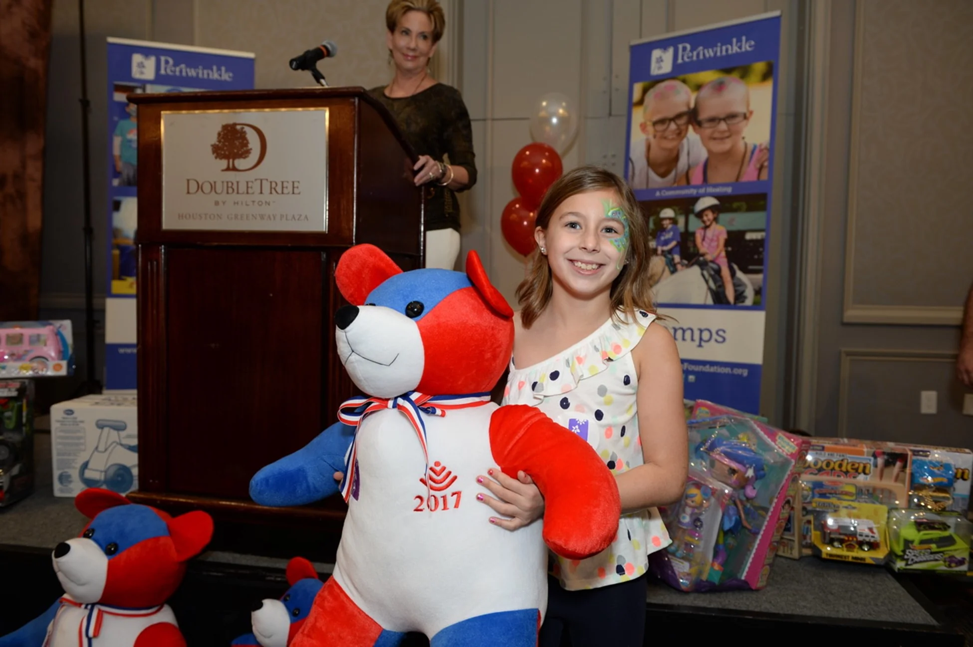 Community Bears have been touching lives for over 24 years and are great gifts and keepsakes for all ages. Our 9” bears are made of the highest quality fabrics and embroidery, and each bear comes with a hangtag featuring a special message inside.